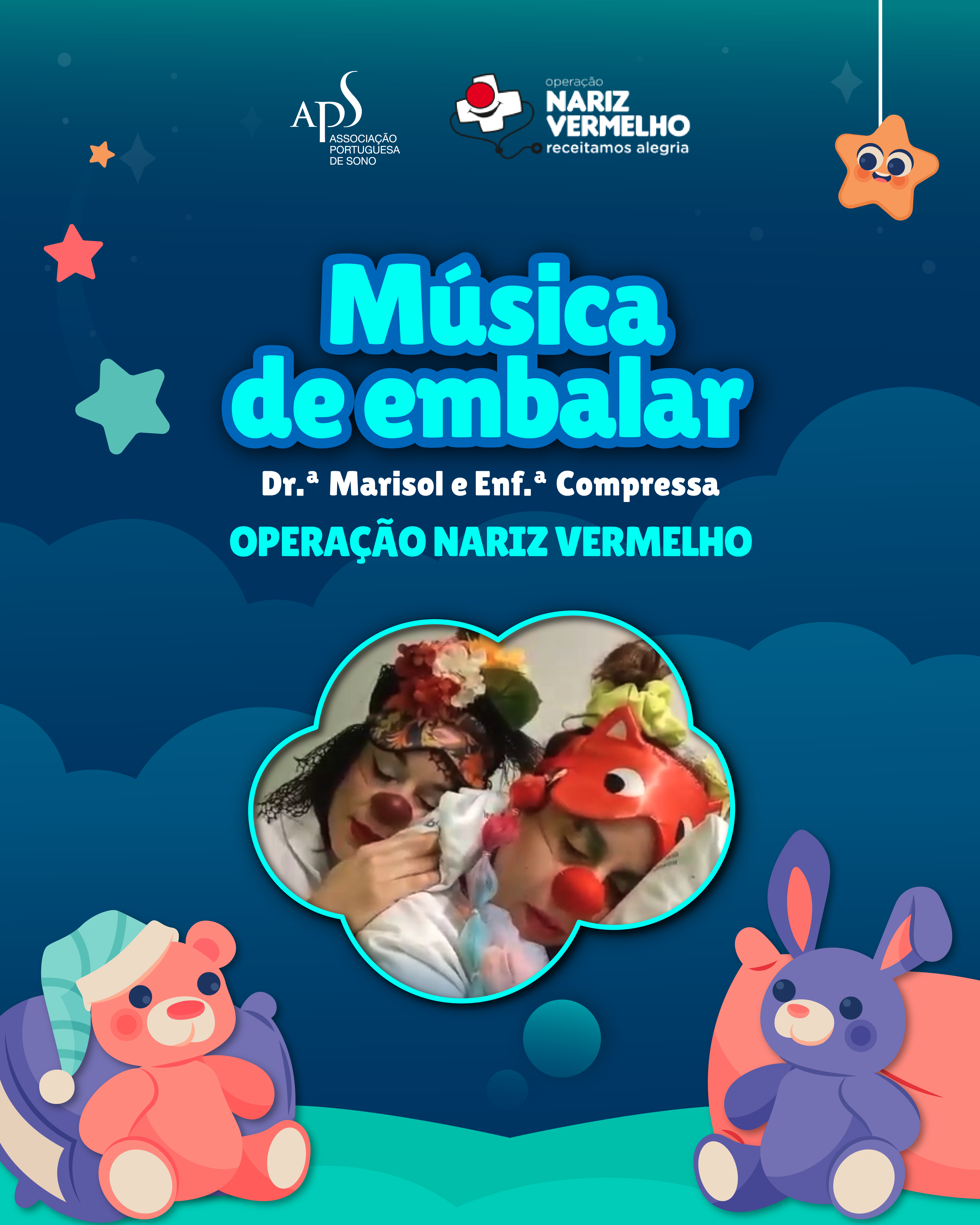 A propósito do Dia da Criança, a Associação Portuguesa do Sono recebeu um presente muito especial da Operação Nariz Vermelho: uma música de embalar interpretada pela Dr.ª Marisol e pela Enf.ª Compressa, duas especialistas muito peculiares em sono.