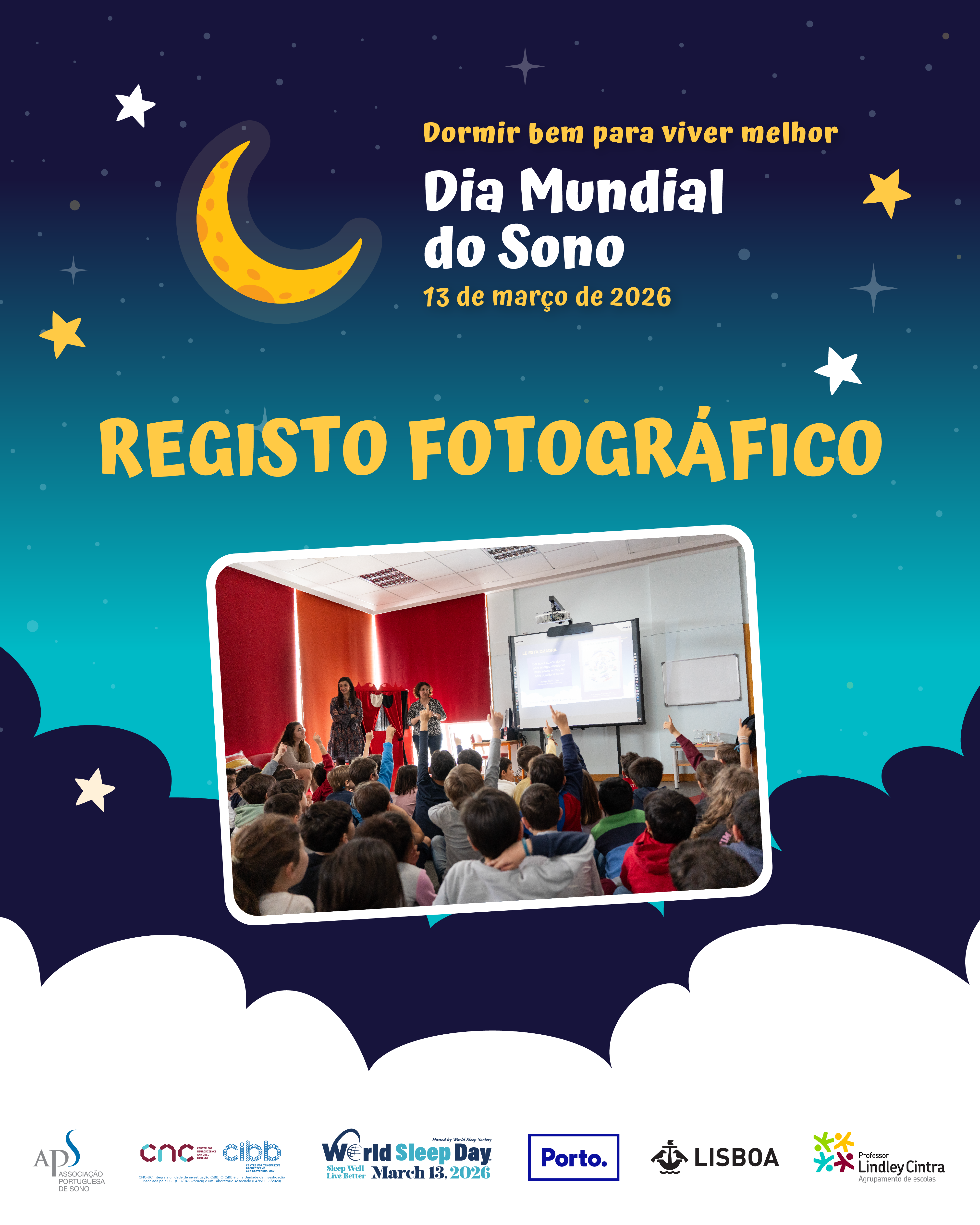 Para assinalar o Dia Mundial do Sono, celebrado a 13 de março, a Associação Portuguesa de Sono (APS), em estreita parceria com o Centro de Neurociências e Biologia Celular da Universidade de Coimbra (CNC-UC), promoveu uma iniciativa nacional de sensibilização que percorreu escolas das cidades de Coimbra, Lisboa e Porto.